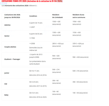 TENNISLIDMAATSCHAPSKOSTEN ZOMER 2026 (Lidmaatschap geactiveerd op 01-04-2026, geldig tot 30-09-2026)