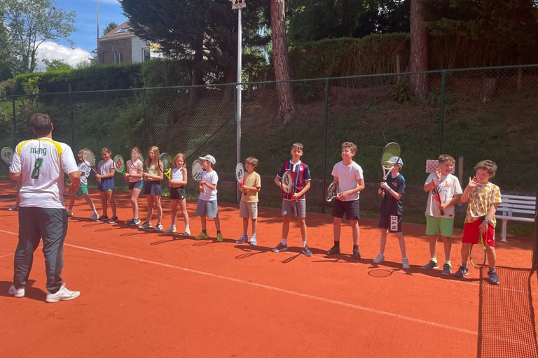 De tennisschool stelt rackets ter beschikking tijdens het kamp.